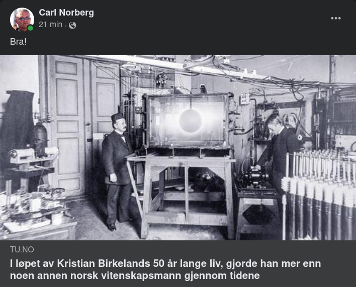 https://www.tu.no/artikler/i-lopet-av-kristian-birkelands-50-ar-lange-liv-gjorde-han-mer-enn-noen-annen-norsk-vitenskapsmann-gjennom-tidene/395805?fbclid=IwAR1EOSU15XDQHTXI_UVGuAfRBYvjHLTCKgIv3NncMxStXPcE9zBr31FVrTg