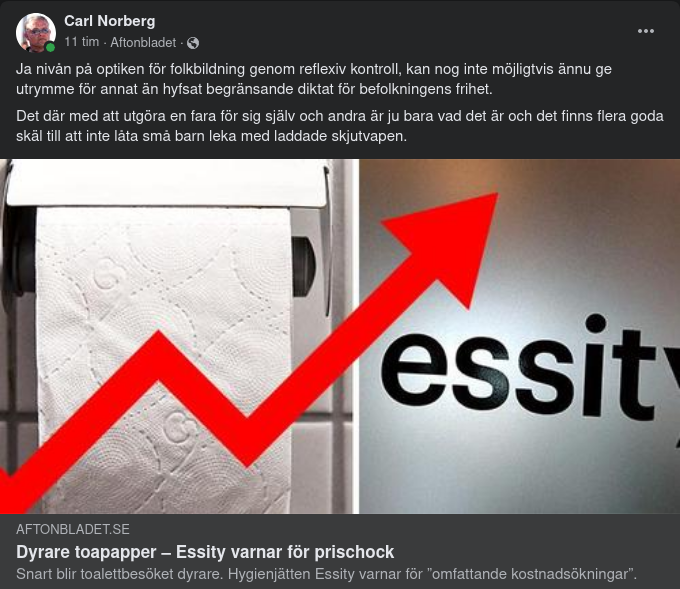 https://www.aftonbladet.se/minekonomi/a/GMGpW6/dyrare-toapapper-essity-aviserar-prischock?fbclid=IwAR2F41jigSeHmabvaSemgm8QpDRCkb-52gVLX2rutYdqHCL9zczKY_f03EU