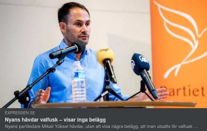 " Partiet Nyans höll en presskonferens i Kista på onsdagen. Ledaren Mikail Yüksel inledde med att hävda att partiet utsatts för valfusk.