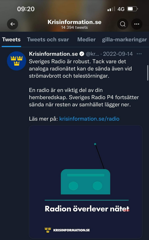 Krisinformation.se Informerar Om Nödtelefon & Ett Robust Sveriges Radios Analoga Radionät