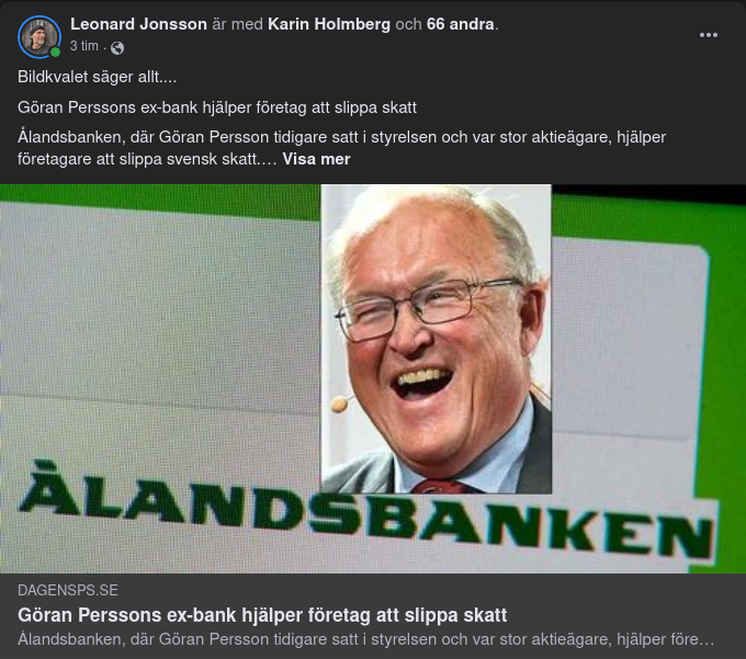 Swedbanks styrelseordförande Göran Persson, tidigare S-statsminister, var styrelseledamot i Ålandsbanken 2015-2019 och fick då ta del av stora aktieutdelningar utöver egna aktieklipp från banken.