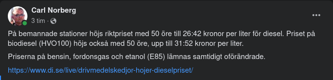 https://www.di.se/live/drivmedelskedjor-hojer-dieselpriset/?fbclid=IwAR1dSJfy8uXyfr9r00YM8MSVNvQBkNanieEy9RkKVsMSf3GEwJGwron9zbM