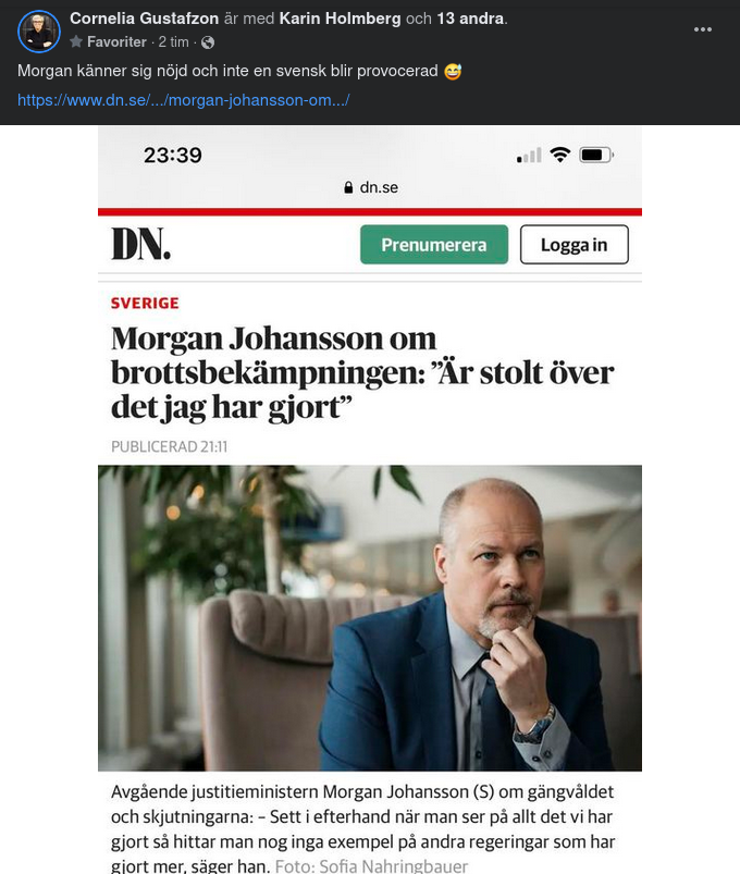 https://www.dn.se/sverige/morgan-johansson-om-brottsbekampningen-ar-stolt-over-det-jag-har-gjort/?fbclid=IwAR2CagQfootYjUrKldVLuyiJPFh_Ieji2GiRAH1vjaM15GnjAKUybDH9j5U