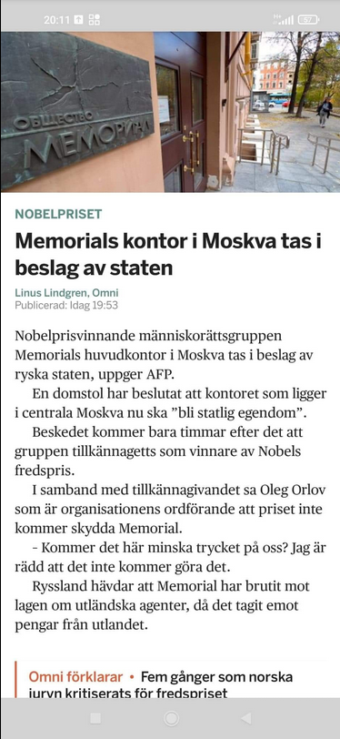 Nobelpristagarorganisationskontor I Moskva Beslagtas Av Staten