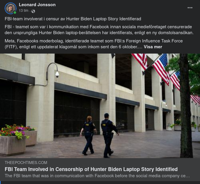 FBI-team involverat i censur av Hunter Biden Laptop Story Identifierad