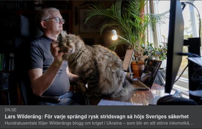 Att ha välsituerade läsare med hjärtan som klappar för Ukraina har sina fördelar. Lars Wilderängs blogg har blivit ett kraftfullt verktyg för pengainsamling. När han ber sina läsare att skänka forsar pengarna in till Swedish Rescuers, Blågula Bilen, Drones2Ukraine och andra hjälporganisationer.
