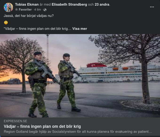 Region Gotland vill att Socialstyrelsen – kunskapsmyndighet för Sveriges vård och omsorg som stöder regioner och kommuner med planer, analyser och kunskapsstöd – hjälper till med att ta fram en plan för hur regionen ska agera i händelse av krig. Frågorna som lyfts är bland andra hur en evakuering av patienter från Visby lasarett till andra delar av ön eller fastlandet skulle gå till och hur transporter till och från ön skulle genomföras om den attackerades.