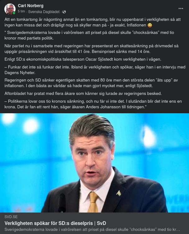 https://www.svd.se/a/4oBv0q/verkligheten-spokar-for-sd-s-dieselpris?fbclid=IwAR11Bs-XIiUov25P3cUvYEGbfTXdlrsOzTMtTfVSten1xku1qLCShncyag0