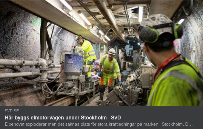 " Elbehovet exploderar men det saknas plats för stora kraftledningar på marken i Stockholm. Då söker sig Svenska kraftnät under jord. SvD har följt med ner i tunneln där den nya elektriska motorvägen dras.