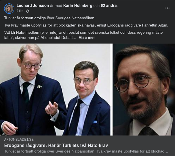 ”Det är dock viktigt att ha i åtanke att Turkiet kommer att utvärdera Sveriges medlemsansökan med målet att regeringen tar konkreta steg inom det avtal som undertecknades i Madrid”.