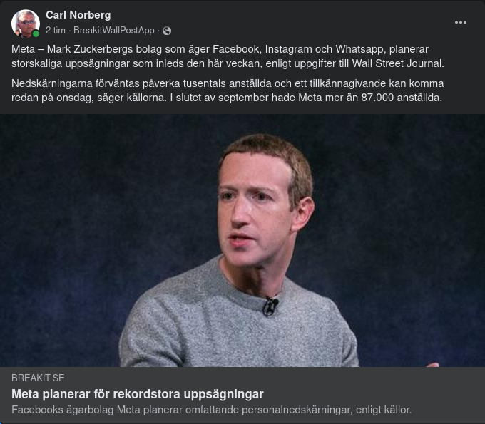 Wall Street Journal rapporterar att, enligt personer som är bekanta med saken, planerar Meta att påbörja storskaliga uppsägningar denna vecka.