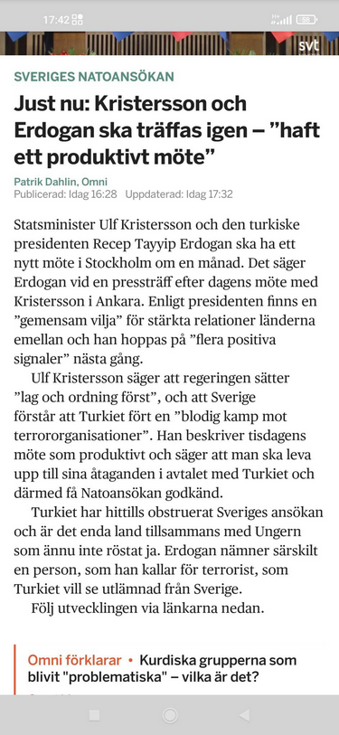 Flera svenska bedömare menade också att läget var gynnsamt för Sverige. Detta efter att president Erdogans rådgivare Fahrettin Altun skrivit en debattartikel i Aftonbladet där han bara nämnde två krav för ett ja till Natomedlemskapet. Att Sverige ska häva exportrestriktioner till Turkiets försvarsindustri och ta den turkiska oron för terrororganisationer på allvar.