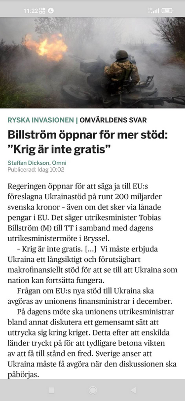 Positiv Billström Angående Lånefinansierat Ukrainastöd