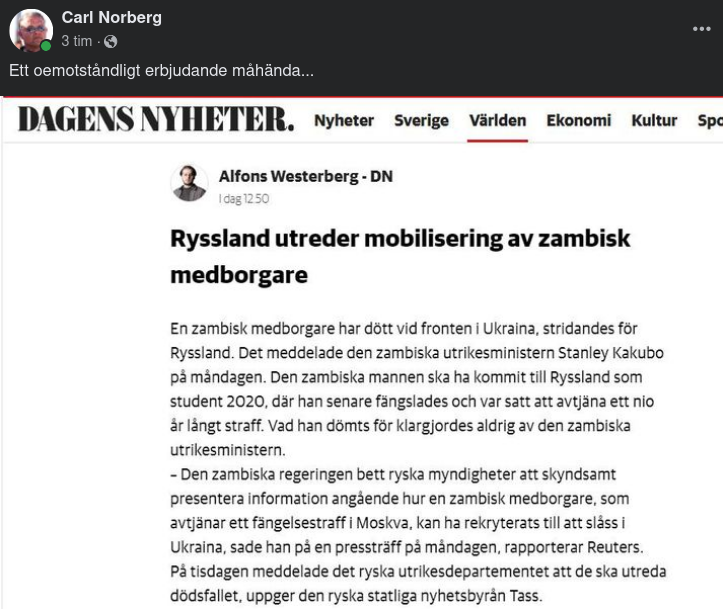 Fängslad Zambier Död I Rysk Krigstjänst