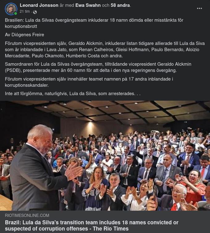Högsta domstolen i extremvänstern, fylld med Lula-kumpaner, kallade de massiva gatuprotesterna mot deras bedragarkandidat, möjligen det största folkliga upproret i världshistorien, på något sätt för ett "brott mot konstitutionen."