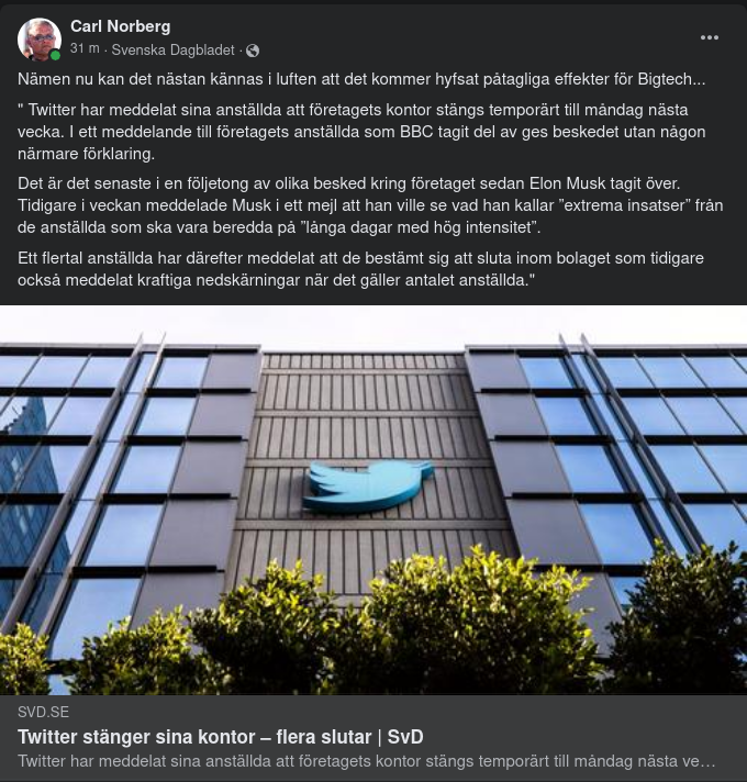 "Framöver, för att bygga ett genombrott för Twitter 2.0 och lyckas i en allt mer konkurrensutsatt värld, kommer vi att behöva vara extremt hårda," skrev Musk i ultimatumet, ett internt memo som skickades i onsdags och sågs av AFP.
