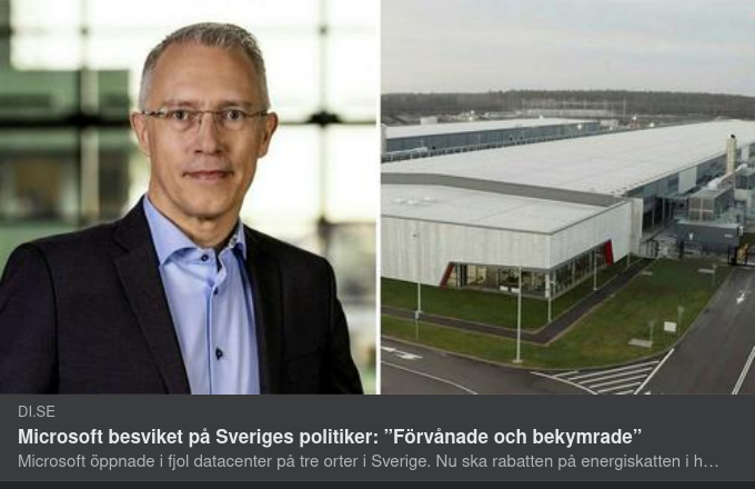 " Under 2017 sänkte regeringen energiskatten för serverhallar med hela 97 procent, nivåer som sedan tidigare hade gällt för annan elintensiv industri av mer traditionellt slag. Men givet den rådande energikrisen föreslog Socialdemokraterna redan före valet i september att skattenedsättningen skulle slopas, vilket den nya moderatledda regeringen senare valt att gå vidare med. Rabatten förväntas nu slopas från den 1 juli nästa år.
