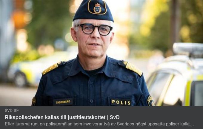 Nu kallas rikspolischefen Anders Thornberg till justitieutskottet, skriver Expressen. Det är Bassem Nasr, rättspolitisk talesperson för Miljöpartiet, som kräver svar på hur rikspolischefen agerat i samband med den hemliga relationen i polisledningen uppdagats.