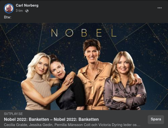 https://www.svtplay.se/video/j1a34x9/nobel-2022-banketten/nobel-2022-banketten?position=1917&id=j1a34x9&fbclid=IwAR1mOB0MYExq2U4qPhDkpiidfeOatSowWJWc90vBYwBZj8_RSAbcK840I_U