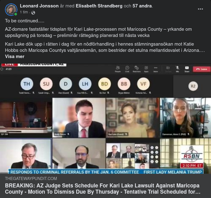 Som rapporterats tidigare har domare Peter Thompson beordrat Kari Lake och de tilltalade Katie Hobbs, Maricopa County Board of Supervisors och Valdirektörerna att inställa sig i rätten i Kari Lakes stämningsansökan mot dem.