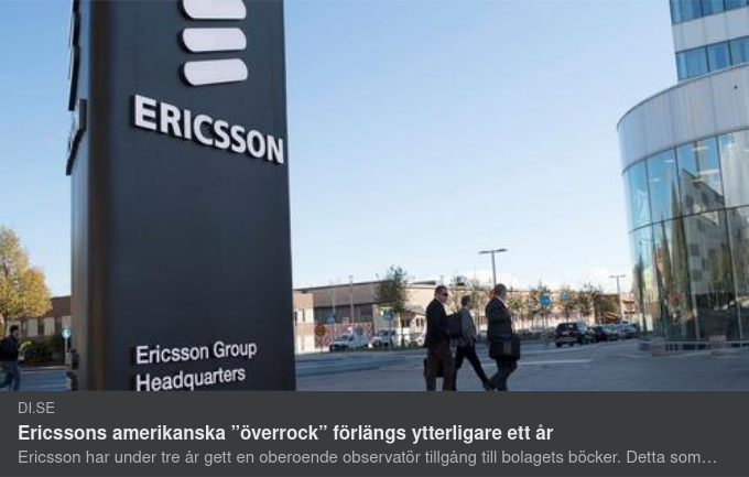 " Ericsson har under tre år gett en oberoende observatör tillgång till bolagets böcker. Detta som en del av uppgörelsen med det amerikanska justitiedepartementet efter den omskrivna mutskandalen.