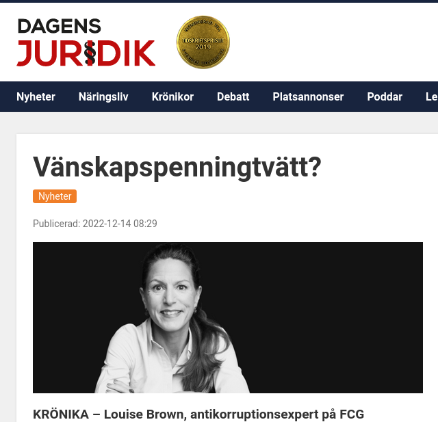 För det första, begreppet ”vänskapskorruption” är unikt för Sverige. Skulle vi rimligen prata om vänskapspenningtvätt?