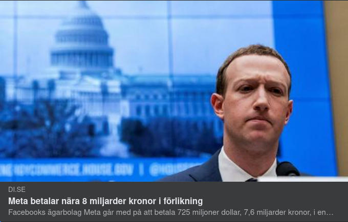 " Den preliminära uppgörelsen nåddes i början av hösten, men nu är prislappen satt. Enligt käranden är det den största förlikningen någonsin gällande dataintegritet. Uppgörelsen måste dock godkännas av federal domstol i USA. Enligt Bloomberg kommer Meta rätt lindrigt undan, om fallet hade gått till rättegång hade hundratals fler miljoner dollar stått på spel.