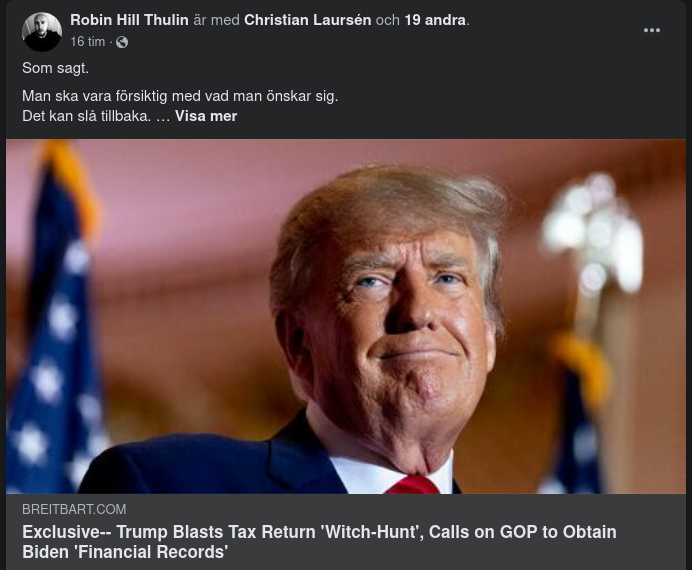 "Former President Donald Trump exclusively shared with Breitbart News his latest campaign video, in which he blasts Democrats for releasing his personal tax returns and calls on the incoming Republican-led House of Representatives to obtain and release President Joe Biden’s financial records."