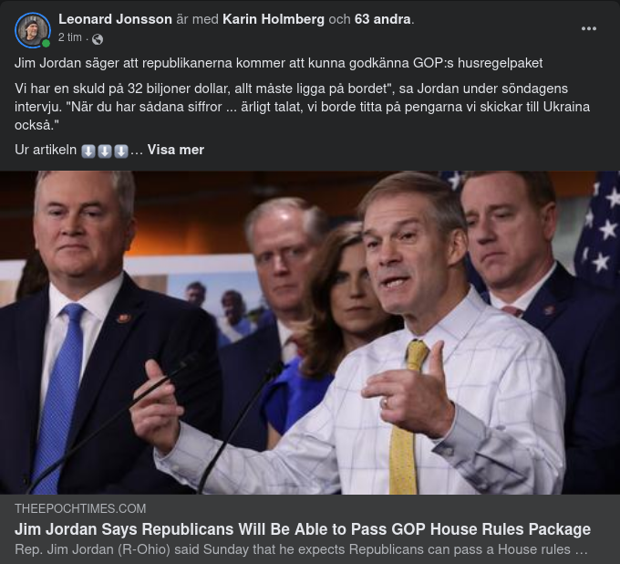 Vi har en skuld på 32 biljoner dollar, allt måste ligga på bordet", sa Jordan under söndagens intervju. "När du har sådana siffror ... ärligt talat, vi borde titta på pengarna vi skickar till Ukraina också."