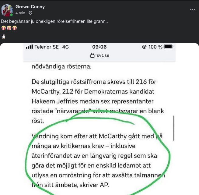 "Jill och jag gratulerar Kevin McCarthy till hans val till talman i huset," sa Biden. "Jag är beredd att arbeta med republikaner när jag kan och väljarna gjorde klart att de förväntar sig att republikanerna också är beredda att arbeta med mig", tillade han.