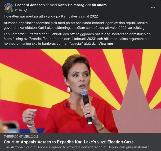Hovrätten går med på att skynda på Kari Lakes valmål 2022