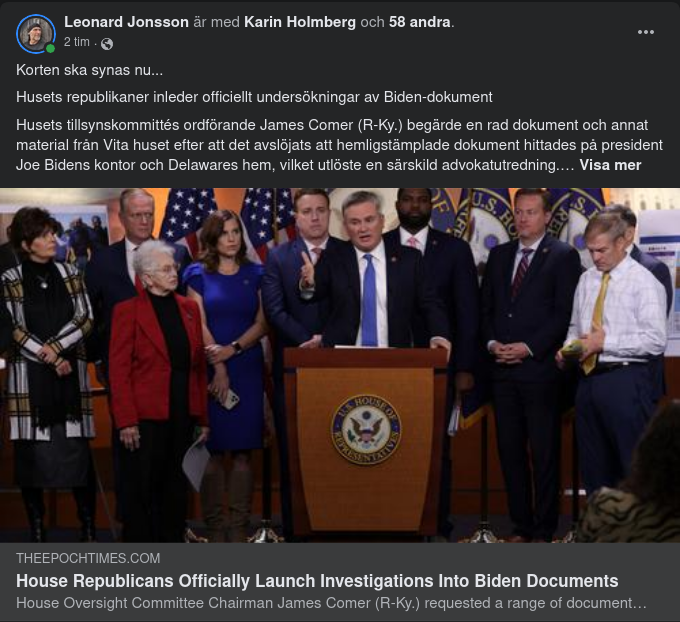 Husets republikaner inleder officiellt undersökningar av Biden-dokument