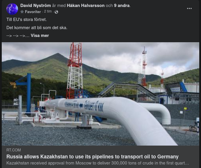 Tyskland bekräftade att raffinaderiet i Schwedt hade bokat kapacitet i pipelinesystemet för kazakisk olja för januari och framåt. Schwedt är landets fjärde största raffinaderi med en kapacitet på 11,6 miljoner ton oljeprodukter per år. Den levererar 90 % av bränslet i Berlin. Den ryska oljejätten Rosneft hade en andel på 54,17 % i företaget fram till september förra året, då Tyskland placerade företagets lokala enheter i förvaltarskap och överlämnade kontrollen över raffinaderiet till landets energimarknadsregulator.