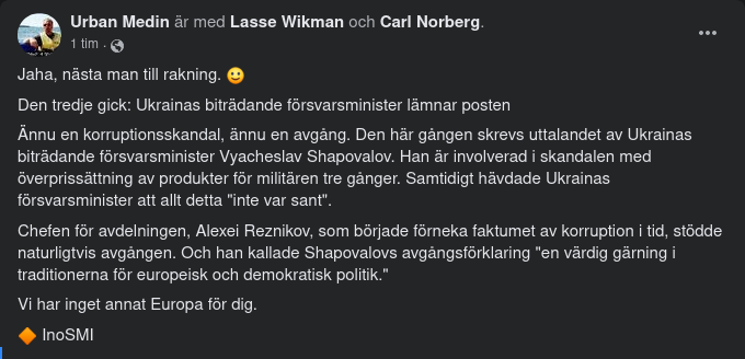 " Ukrainas vice riksåklagare Oleksij Symonenko samt vice försvarsminister Vjatsjeslav Sjapovalov lämnar sina poster – den senare efter vad försvarsdepartementet i Kiev kallar ”grundlösa korruptionsanklagelser”.