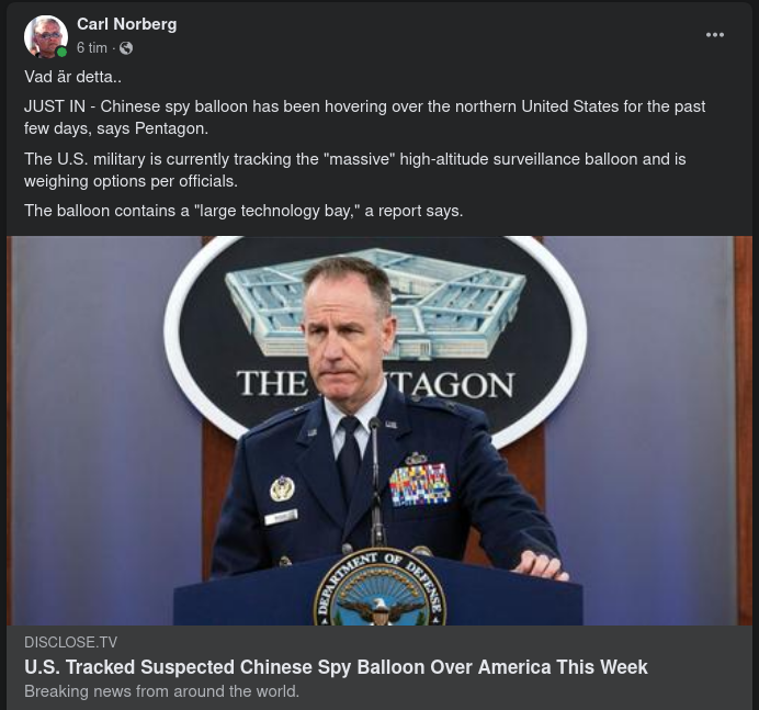 Även om det inte finns någon officiell bekräftelse på att ballongen tillhör Kina, sa amerikanska underrättelsetjänsten att de har "mycket högt förtroende" att den drivs av den kinesiska regeringen. Amerikanska försvarstjänstemän indikerade också att även om incidenten inte är oöverträffad, stannar enheten över USA längre än vanligt.
