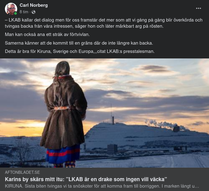 https://www.aftonbladet.se/nyheter/a/wAKJv1/samebyn-skars-mitt-itu-lkab-ar-en-drake-som-ingen-vill-vacka?fbclid=IwAR2ZYE2f3nY0y-AjGDYuY6Np_5nt6VjwOJdhdF9CX5E8I3cQ9PVr7TfvBhw