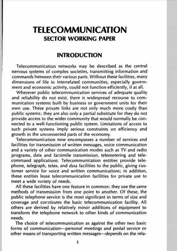 UPPSATS OM TELEKOMMUNIKATIONSSEKTORN - VÄRLDSBANKEN 1971