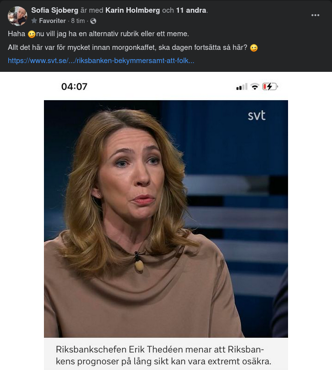 https://www.svt.se/nyheter/ekonomi/riksbanken-bekymmersamt-att-folk-litar-pa-vara-prognoser?fbclid=IwAR3HpiEm8hiE6FTVaxWdZRw4_EFZo0VONlW-TMsJNPgeBtNa46XCjYldDnQ