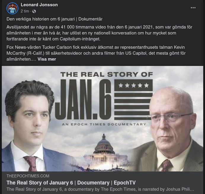 https://www.theepochtimes.com/the-real-story-of-jan-6-documentary_4596670.html?fbclid=IwAR3c2NF5aLMUaVQSzlEnF_zIbbL3tVd7vJqKVsEKft-Ygus2Dbt87ldy00M Den verkliga historien om 6 januari | Dokumentär Avslöjandet av några av de 41 000 timmarna video från den 6 januari 2021, som var gömda för allmänheten i mer än två år, har utlöst en ny nationell konversation om hur mycket som fortfarande inte är känt om Capitolium-intrånget. Fox News-värden Tucker Carlson fick exklusiv åtkomst av representanthusets talman Kevin McCarthy (R-Calif.) till säkerhetsvideor och andra filmer från US Capitol, det mesta gömt för allmänheten. Om Carlsons första sändningsspecial på filmerna som sändes den 6 mars är någon indikation, handlar den rådande berättelsen den 6 januari om livsuppehållande, och dagens arv av oroande frågor fortsätter att fördjupas som ett resultat. Genom nyhetsmedia har allmänheten haft begränsad tillgång till nästan 4,7 års video som tagits med säkerhetskameror, poliskameror och videor tagna av tiotusentals demonstranter den 6 januari. Långt innan Carlson föreställde sig sina mycket bevakade specialerbjudanden den 6–7 mars, klagade försvarsadvokater den 6 januari i brottmål på att video och andra bevis som är till nytta för deras klienter inte har avslöjats av regeringen som krävs enligt högsta domstolens avgöranden. Med Carlsons avslöjanden om "QAnon Shaman", Jacob Chansley, och den mystiska figuren den 6 januari Ray Epps, kommer ropen från försvarsadvokater om friande bevis troligen att öka under de kommande veckorna och månaderna. Eftersom den 6 januari utan tvekan var den mest fotograferade och videofilmade händelsen i historien, borde sanningen om dagen vara lätt att urskilja. Men den massiva digitala beviscachen har kontrollerats hårt – och till och med manipulerats – med stor effekt på den allmänna opinionen. Obehindrad allmänhetens tillgång till hela videon – om den beviljas – kommer att knäcka den äldre mediaberättelsen ännu mer och vidga den politiska klyftan i Amerika. Vad som följer är en översikt över de otaliga problem som de 41 000 timmarna video med största sannolikhet kommer att påverka. Misslyckande med ledarskap vid evakuering Evakueringen av den amerikanska senaten och US House den 6 januari ger kanske det tydligaste fallet av hur säkerhetsvideo kan definiera en kritisk historia. I Carlsons andra Capitol-videospecial den 7 mars kommer han att berätta historien om US Capitol Police Lt. Tarik Johnson, som sa att han lämnades utan riktning den 6 januari av assisterande Capitolpolischef Yogananda Pittman. Efter att ha gått till radion för att be om tillåtelse att evakuera senaten fick Johnson inget svar. Till och med efter att USCP:s avsändare upprepade Johnsons uppmaning om riktning, blev det tyst från Command Center. Johnson gick vidare med evakueringen och fortsatte med att leda evakueringen av huset. Han sa på radion att han skulle ta vilken disciplin som helst för att agera på egen hand. Avsnittet om "Tucker Carlson Tonight" kommer delvis att baseras på undersökande rapportering från Epoch Times, som berättade Johnsons historia i januari. "Det kom inget svar från någon på kommandocentret," sa Johnson till Epoch Times. "Jag säger att även innan jag påbörjade evakueringen, säger jag specifikt: 'Vi måste börja tänka på att få ut folket innan vi inte har en chans till det.' "Jag hörde inget svar. Sedan bad jag om lov att evakuera. Jag hörde inget svar." Johnson sa att kommandocentrets tystnad orsakade förlusten av dyrbar tid som kan ha förhindrat dödsskjutningen av demonstranten Ashli Babbitt ungefär klockan 14:45 den 6 januari. Johnson blev känd i stora delar av Amerika som Capitol Police-löjtnanten som bar en knallröd Make America Great Again-bollkeps medan han arbetade med ett par Oath Keepers för att rädda 16 USCP-officerare som var fångade i foajén innanför de enorma Columbus Doors. Johnson stängdes av USCP och anklagades senare för regelöverträdelser, inklusive otillbörligt beteende, för att ha burit Trump-hatten och arbetat med Oath Keepers på officersräddningen. Han sa att han tror att dessa anklagelser faktiskt väcktes för att evakueringarna och andra ledarskapsbeslut han fattade på en del av en sekund gjorde Pittman generad. Polisens åtgärder väcker frågor Carlson sände Capitol säkerhetsvideo som visar Capitol Police leda QAnon Shaman runt byggnaden och släppa in honom i den amerikanska senaten, där han poserade på talarstolen och höll ett tal. Många andra aspekter av polisens närvaro och beteende den 6 januari har redan fått granskning och kritik. Det mest grafiska exemplet är förmodligen det av Metropolitan Police Department Officer Daniel Thau, som var som en enmansarmé på västfronten av Capitolium under mitten av eftermiddagen den 6 januari. Bodycam-filmer från flera poliser från Metropolitan Police Department (MPD) visar att Thau tappade minst fyra demonstranter med en taser, slängde otaliga explosiva ammunition i den tätt packade folkmassan, riktade pepparspray med hög hastighet i en hård motvind och avfyrade en 40 mm granat från en ammunitionskastare in i folkmassan. Hans egen kroppskamera visar hur han rusar fram till en annan officer under invigningsställningen och ropar: "Vi behöver mer [sprängmedel] ammunition!" Efter att ha varit den möjligen mest aktiva tjänstemannen när det gäller att tillämpa "smärta efterlevnad" på folkmassorna, drog Thau slutsatsen att strategin inte fungerade. Han sa till en annan officer att ansträngningen var som att "skjuta zombies" och förklarade: "Vi förökar dem genom att skjuta dem." Polisens våldsanvändning blev ett hett omdebatterat ämne, åtminstone på det offentliga torget. Metropolitan Police förklarade all dess användning av våld den 6 januari vara motiverad. Kraftanvändningsexperten Stan Kephart, som kommenterade i Epoch Times-dokumentäre