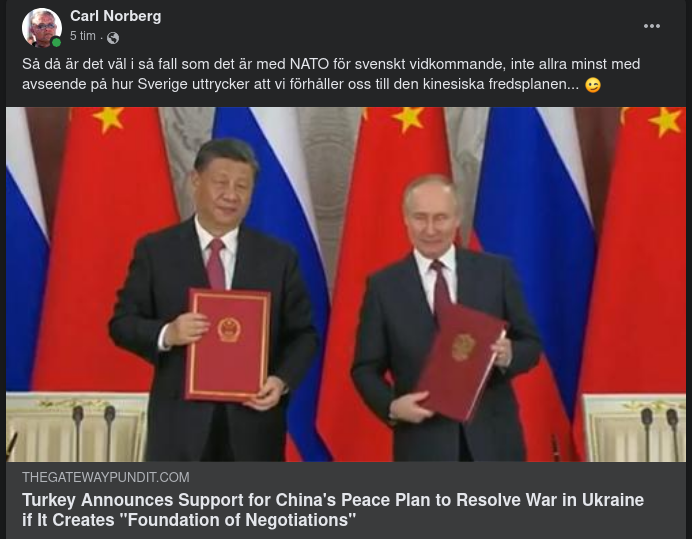 https://www.thegatewaypundit.com/2023/03/turkey-announces-support-for-chinas-peace-plan-to-resolve-war-in-ukraine-if-it-creates-foundation-of-negotiations/?fbclid=IwAR2a4kvCGIk-3f5jZ0d3V7Rcuwd-CRnRMlwjm9m9dFv61IVPiNOqVnUhRq4