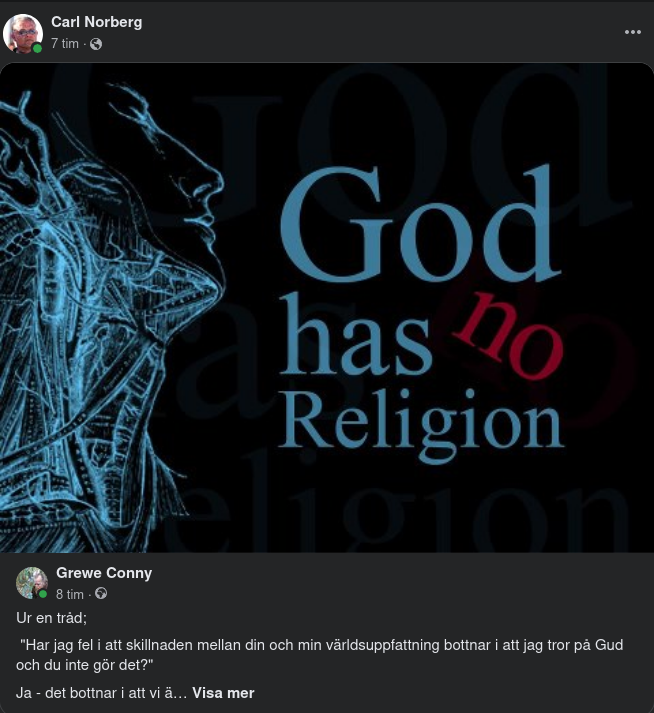 Men för att återknyta till början av den här kommentaren så är det en sak som ofta slår mig som frapperande med människor som tror på en Gud och som skiljer oss åt - de försöker alltid övertyga mig om att denna Gud finns emedan jag aldrig försöker övertyga dem om att någon Gud inte finns.