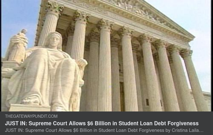 https://www.thegatewaypundit.com/2023/04/just-in-supreme-court-allows-6-billion-in-student-loan-debt-forgiveness/?fbclid=IwAR0muk1obBTccOU-RLrM7XRco1xEehzpb-VCd-0t6lAyW8pRubWGXBETFlk