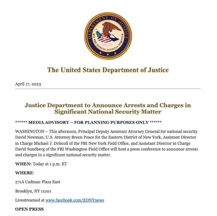 DoJ Annonserar Om Gripanden Av Signifikant Nationellt Säkerhetsintresse