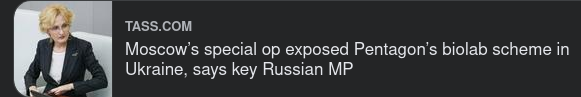 MOSCOW, January 23. /TASS/. The Pentagon's clandestine biological project was laid bare primarily thanks to Russia's special military operation and the work of the commission, Irina Yarovaya, co-chair of the parliamentary panel looking into the work of US biolabs in Ukraine and Deputy Speaker of the State Duma, said on Monday. "The disclosure of the Pentagon's secret and very hazardous biological project in Ukraine became possible first of all due to the special military operation and our investigation. And we see that this has sparked enormous interest, including public interest in the United States itself," she said at a meeting of the commission. The task of the commission is to "set forth all the evidence that has been investigated in a reasoned, consistent and systematic way", which fully confirms the unsound military-biological project "run by the US in Ukraine as part of a larger, dangerous and aggressive plan for the military-biological colonization of the world," the senior legislator added. In March 2022, Russia’s State Duma and Federation Council adopted a resolution to conduct a special parliamentary inquiry into the operation of biological labs in Ukraine and to create a special panel of 14 Duma members and 14 Federation Council members. Yarovaya and Federation Council Deputy Speaker Konstantin Kosachev are the commission’s co-chairs.