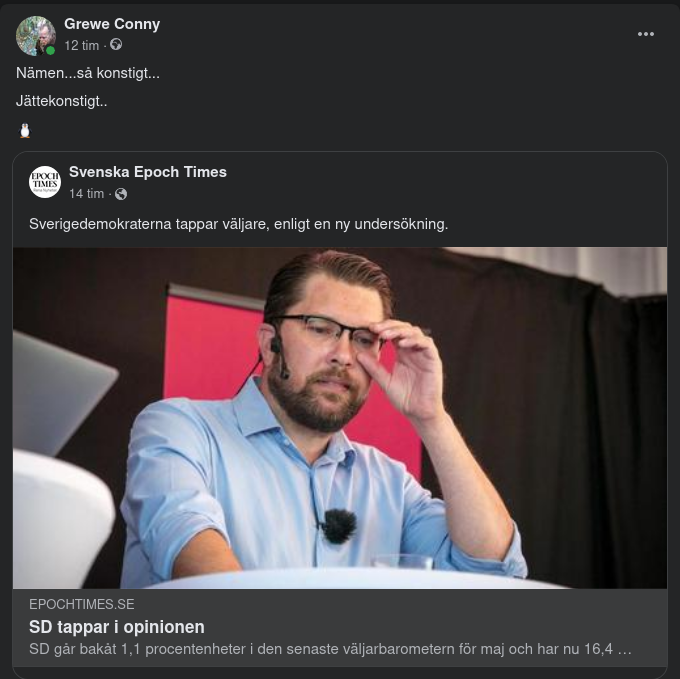 https://www.epochtimes.se/SD-tappar-i-opinionen?fbclid=IwAR2rGoF7wsEyKA5z35eKXyKjhOJqerFXs_marBty4ZYp21RkAeOLwahEbFk