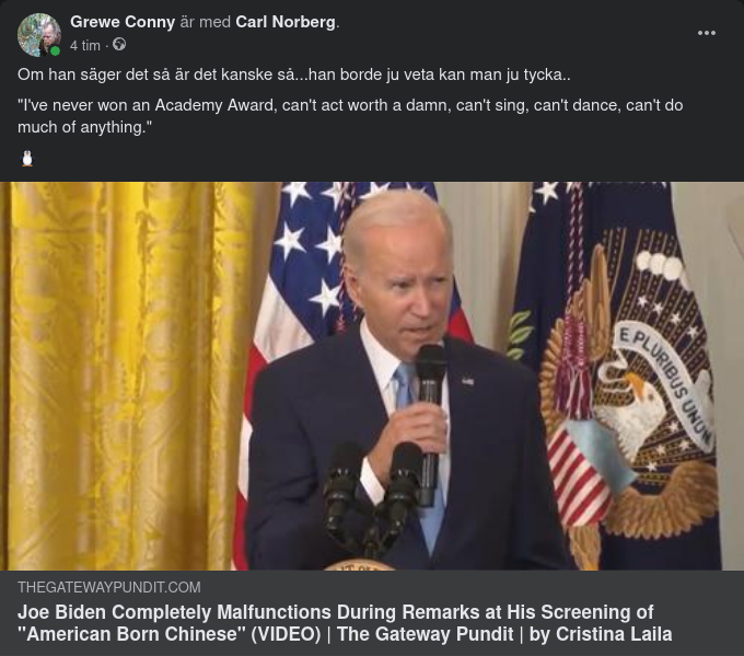 https://www.thegatewaypundit.com/2023/05/joe-biden-completely-malfunctions-during-remarks-at-his-screening-of-american-born-chinese-video/?fbclid=IwAR0V4IR41Sdd2OSZhykwlyUz6UyUCTpA1td5CeYncKhwPiKoGFzIylSSIcw