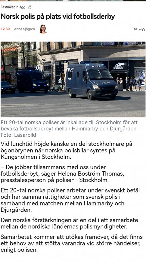 Norsk Polis Vid Stockholmsderby