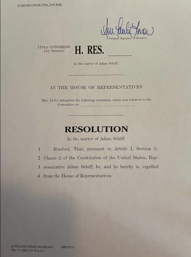" Efter att representanten Adam Schiff obevekligt sörjde för Russiagate-bluffen och utan bevis hävdade att det fanns "mer än indicier" för att Donald Trump samarbetade med Ryssland 2016, har representanten Anna Paulina Luna (R-FL) infört en resolution från parlamentet om att utvisa Schiff från kongressen efter att Durham-rapporten drog slutsatsen att det inte fanns någon samverkan."Stämmer detta?