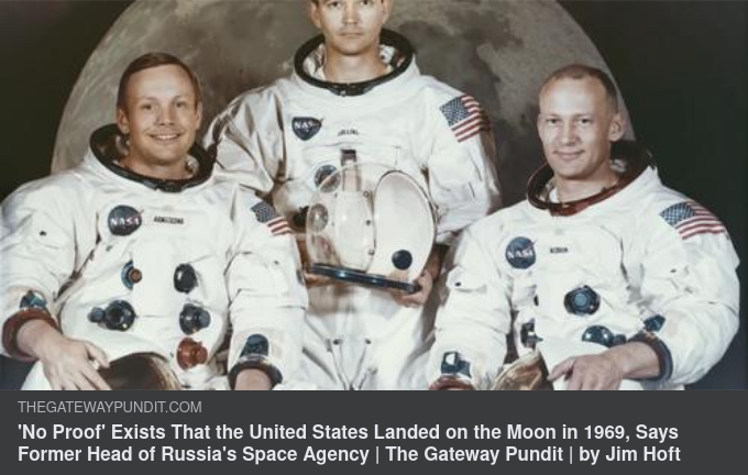 https://www.thegatewaypundit.com/2023/05/no-proof-exists-that-the-united-states-landed-on-the-moon-in-1969-says-former-head-of-russias-space-agency/?fbclid=IwAR1wuThdHqI4s7rPGS-98r6q44QjFvW2y20UE1jDZ1yB5gTBCsK7RYGt78w