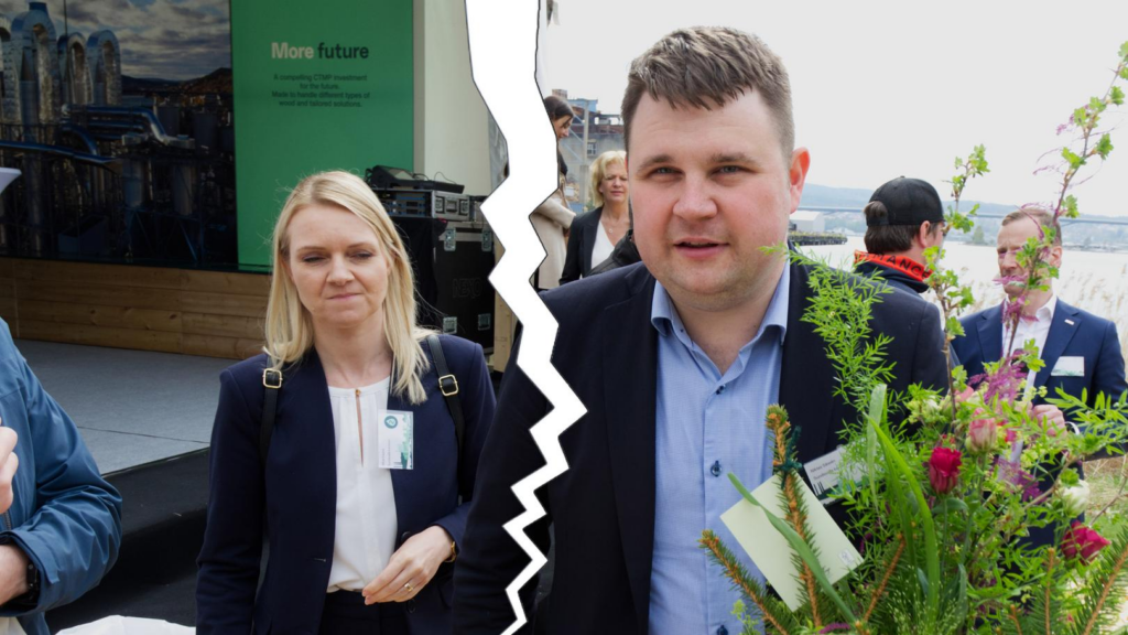 Bilden på oppositionsrådet Alicja Kapica och Niklas Säwén togs vid invigningen av SCA:s nya fabrik i Ortviken nyligen, men nu ifrågasätter hon Säwén som nytt kommunalråd.